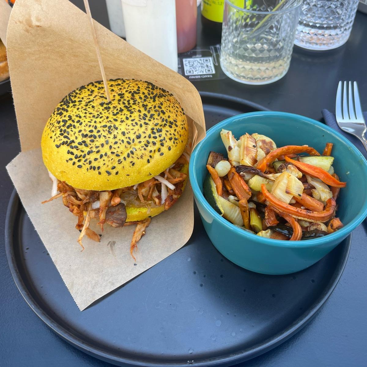 amazing dish and honest price. you get a free side with your burger and can choose among roasted veggies, sweet potato fries and classic french fries. the staff is absolutely lovely, they have local ingredients and incredible choice -they even have draft kombucha, which was delicious - and the space is absolutely beautiful