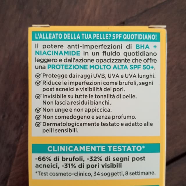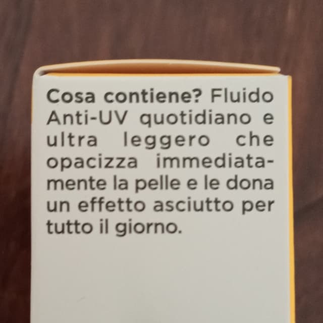 Ottima crema con spf 50, si spalma molto bene, ne basta poca e non lascia la pelle lucida.