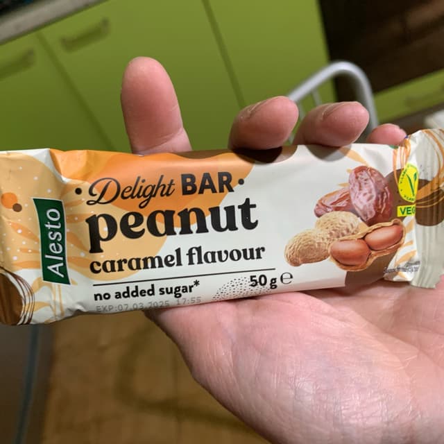 Che golosità per gli innamorati del burro di arachidi come mio marito e con aggiunta di caramello salato. La barretta sembra quasi integrale ed è davvero super energetica.