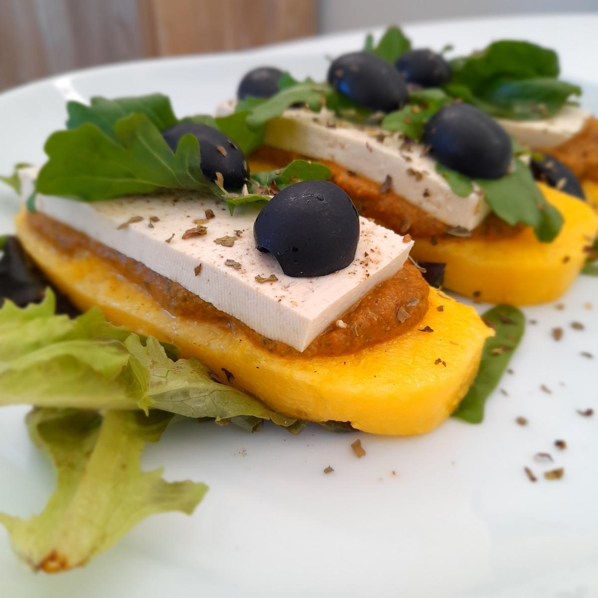 It is very easy to prepare, I sliced it and sauteéd it in some extra virgin olive oil then topped it with a homemade red pesto sauce, tofu, black olives and rúcula. Very tasty, I must say!! And also perfect for any #veganonabudget, only 0,99€ for the 1kg package.