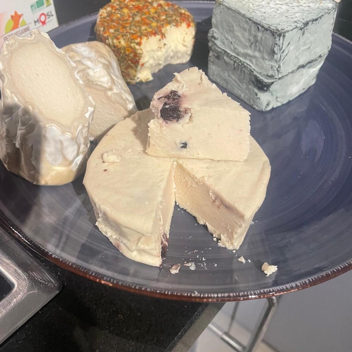 #vegancheese with #cranberry , This is one of those fancy vegan cheeses that is healthier, but is very expensive (€7.5 (discount), normally €8.95🤑). #cashew based , I think this one was my least favorite of the ones we bought on here, I guess fruit in cheese doesn’t fit together in my head 😅, Maybe next to each other! 🍇😋 But I see that this brand has a bunch more cheeses, so I’m excited to try those! 😁😃😋 This was also #soyfree