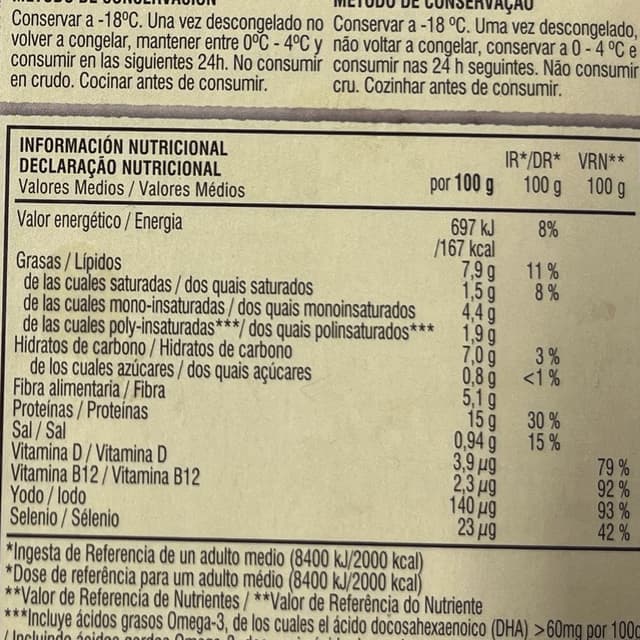 Iba con expectativas bajas de pensar que era imposible convertir un vegetal en pescado pero tenía que probarlo y ha sido milagroso el auténtico sabor, textura crujiente por fuera y carnoso por dentro con la misma forma de merluza! Sin gluten! Alto en proteína! Contiene omega3 y vitaminas.