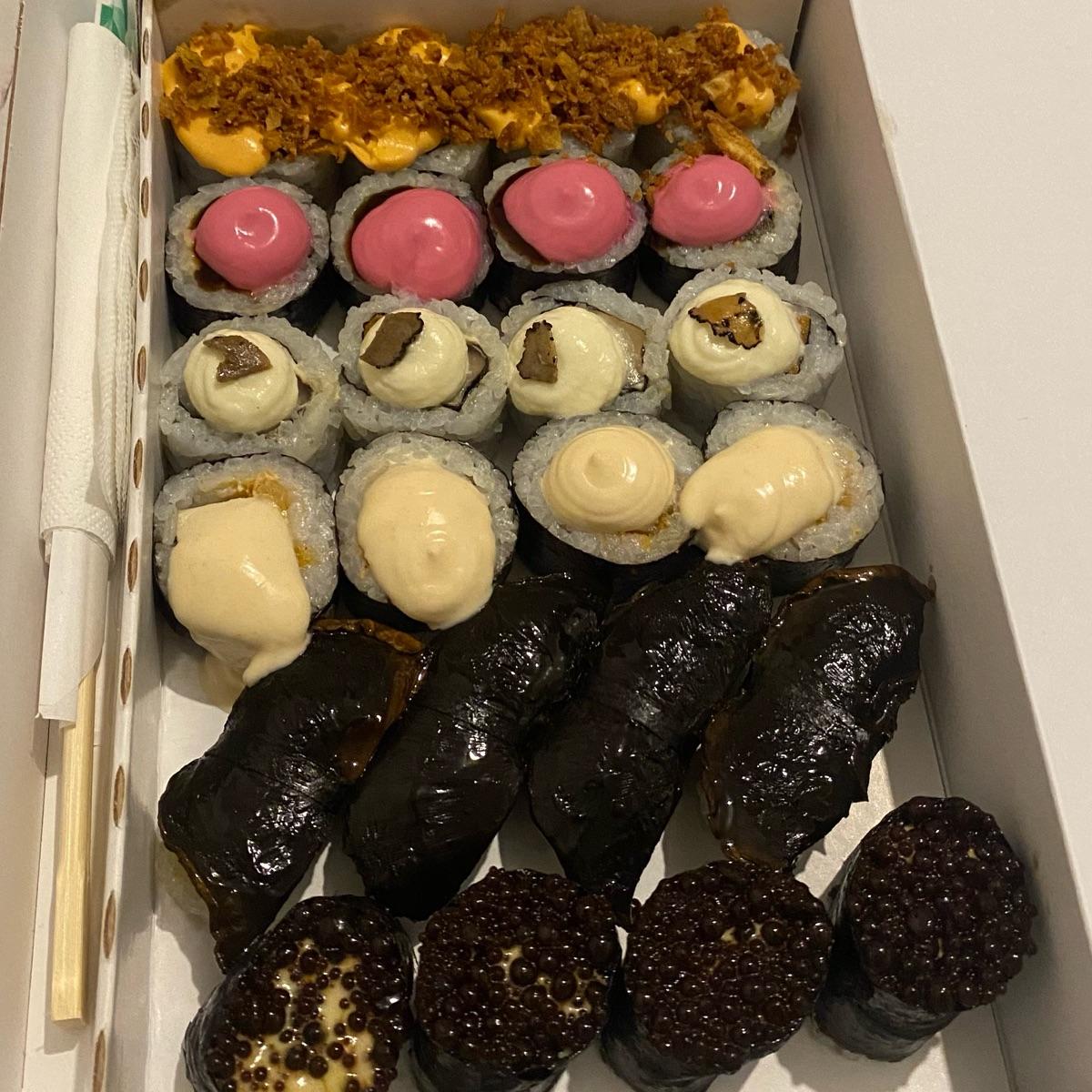 Sushi fantastico, questa box contiene anche quello dolce al tiramisù. Il pezzo migliore è quello al tartufo♥️