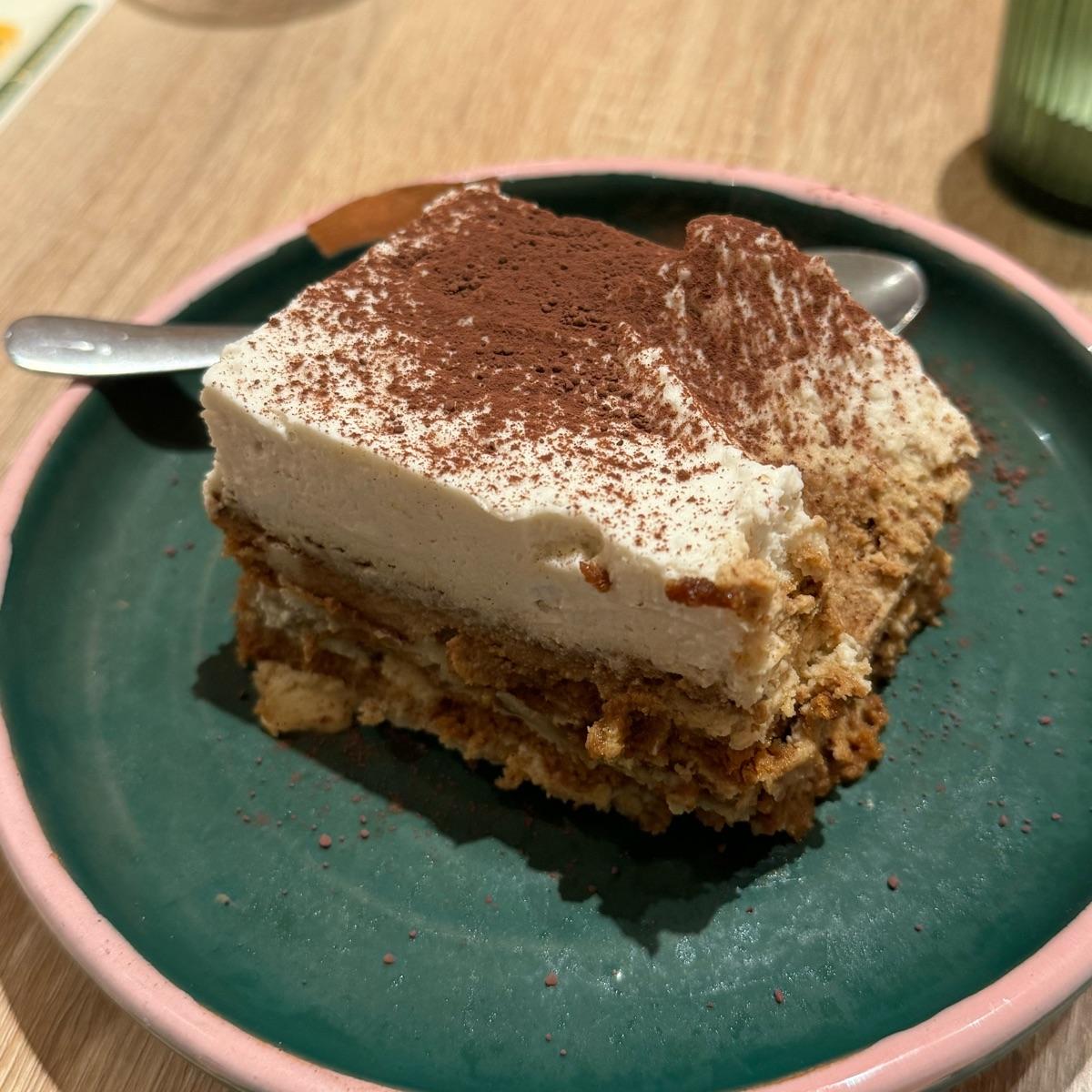 So già che i paladini esperti del tiramisù originale diranno che questo non è un tiramisù (🙄) però a me è piaciuto molto, il dolce è ottimo: si presenta bello compatto, stratificato, e con un centimetro abbondante di simil “crema” nella parte superiore. Assaggiandolo ho percepito il gusto dei biscotti Lotus anche se non so con cosa fosse fatto.. Comunque un bel dolciazzo carico e goloso🫶🏻🥲