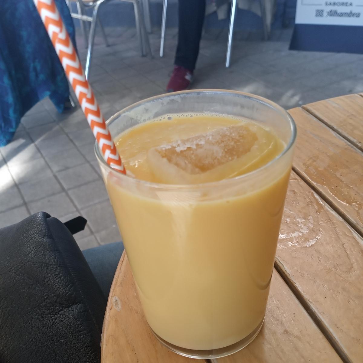 Batido de mango con leche de soja. Muy buena opción para acompañar la merienda. Mucho sabor a mango, dulce pero sin pasarse. Indistinguible de uno hecho con fluidos mamarios de rumiantes, entonces ¿Por qué seguir matando a sus bebés para robarles su alimento infantil? Mira los enlaces de abajo si aún no eres vegano.