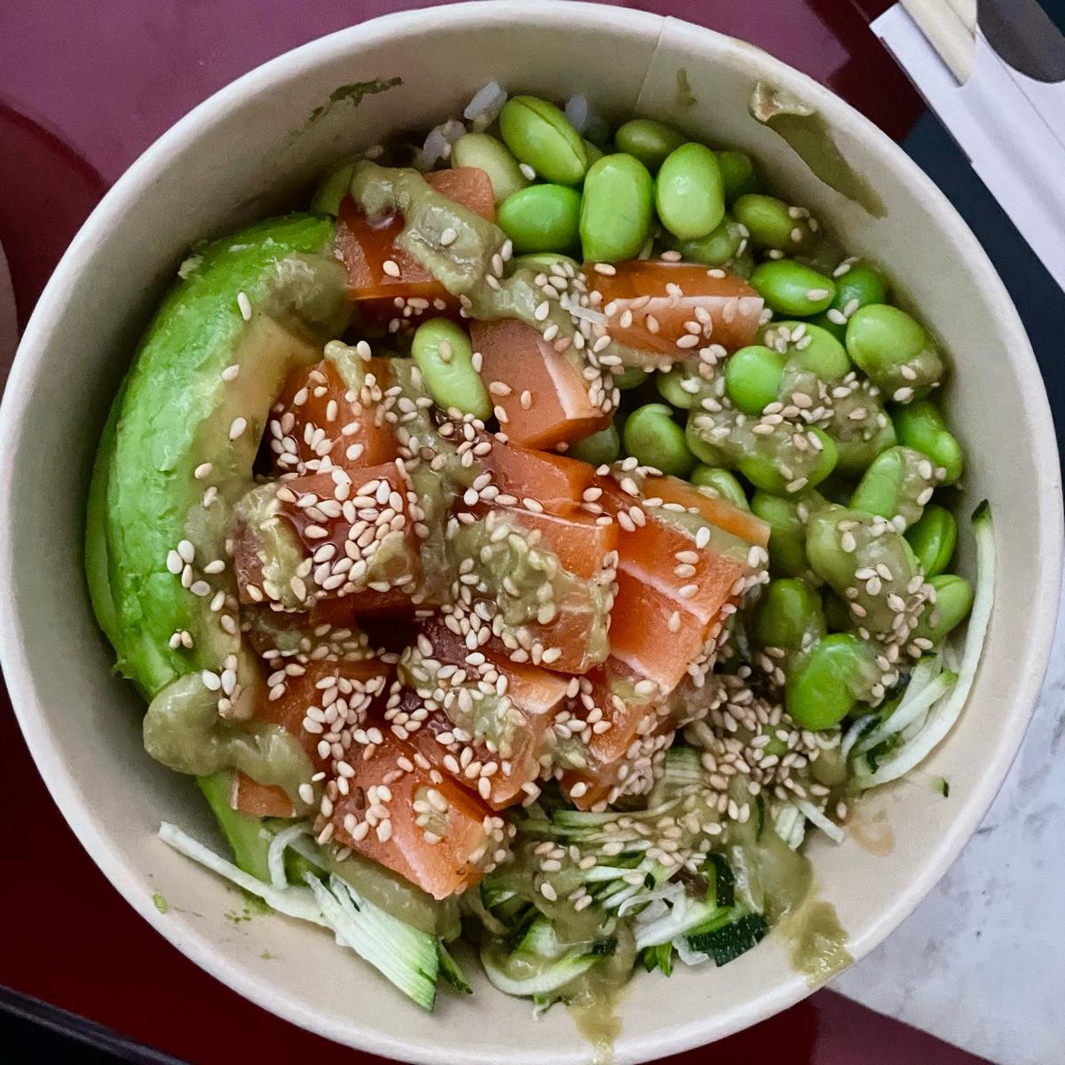 Ottimo e ben bilanciato, ricorda molto il classico poke non vegano con avocado e salmone.