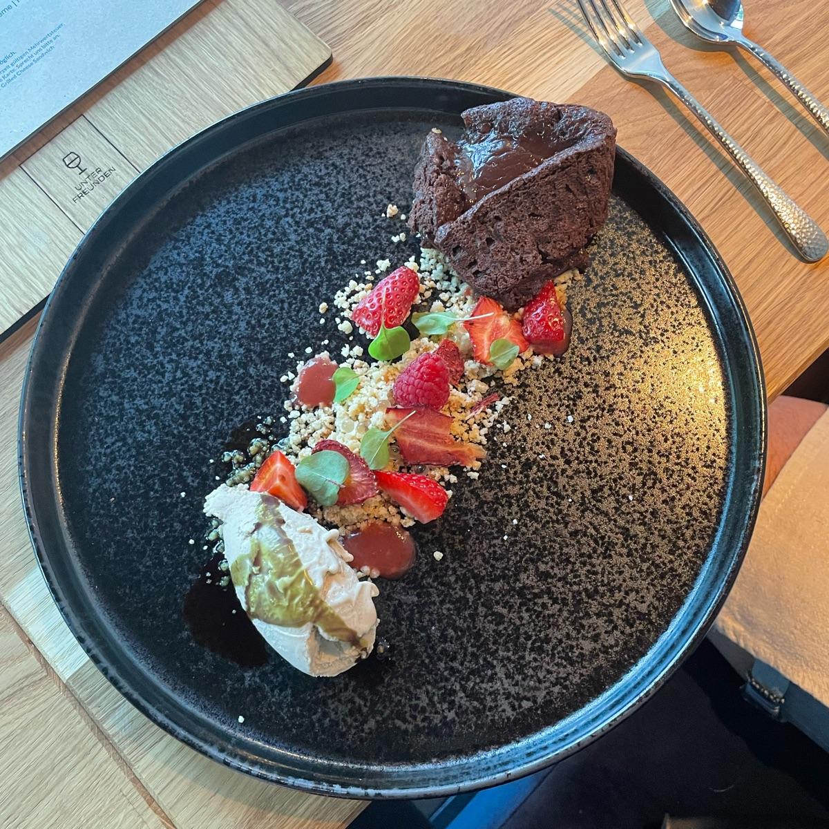 What an outstanding dessert combination 😍 The best was the homemade cashew-vanilla ice cream - soooo creamy - but also the small chocolate cake with an extra creamy filling was delicious 🤤 - 13€ #jonathangebhardt #veganfinedining #finedining #vegandessert #chocolate #chocoholic #sweettooth #sweettreat #veganinschleswig-holstein #schleswig-holstein