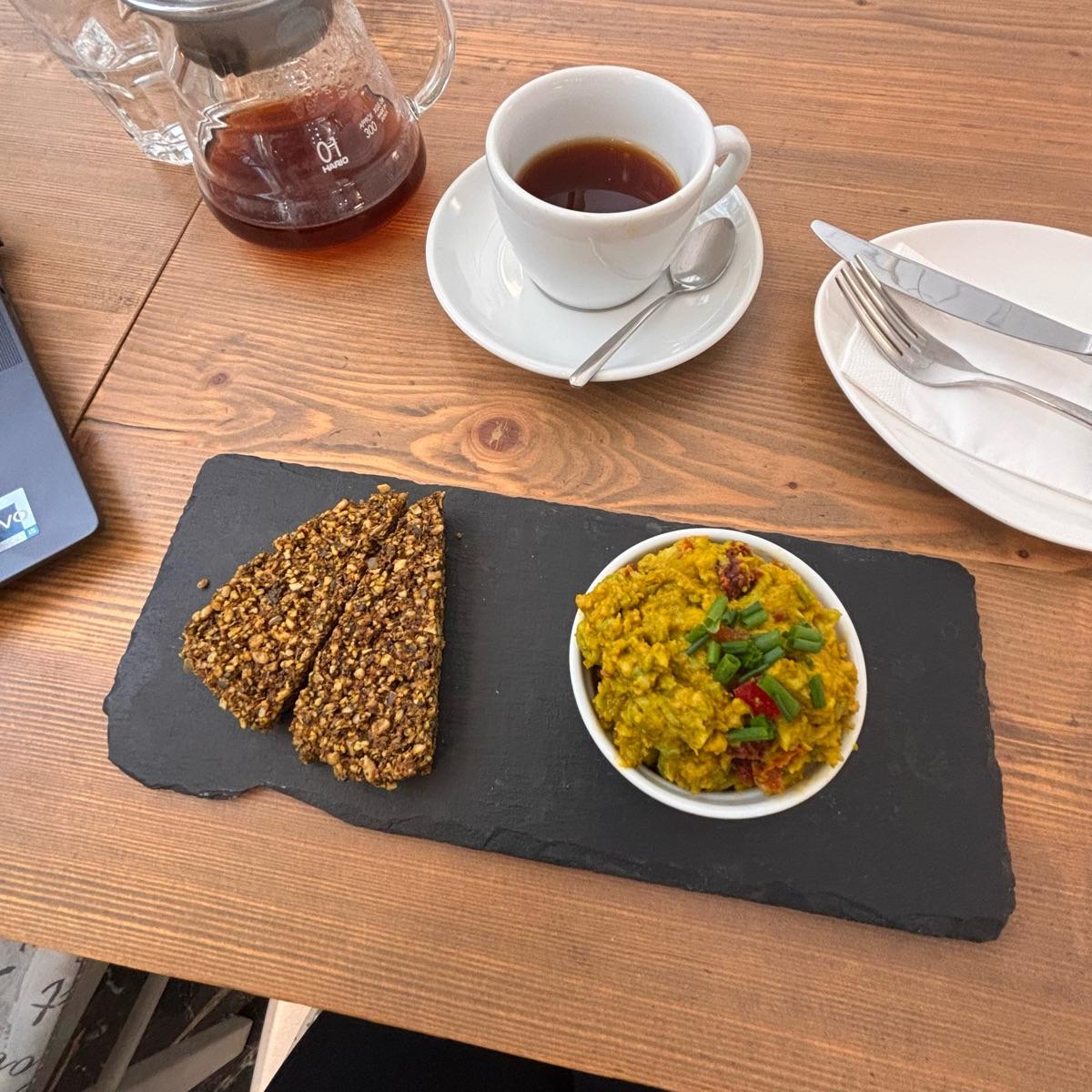 Avo "egg" spread with crackers. Tasty but calling it "egg" is quite bold 😅