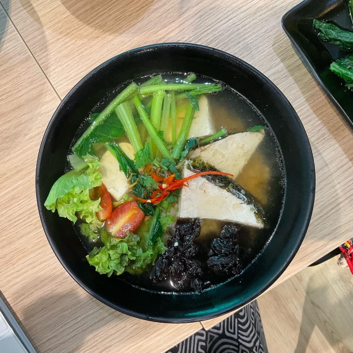 The #soup is surprisingly salty 🧂 In a good way! I had a very on brand seizure an hour before and needed anything to bring my blood pressure back up 🩸 I love the mix of #veganfish and #tofu in this 🐟 They were oddly unflavoured too 😂 Such an odd dish!