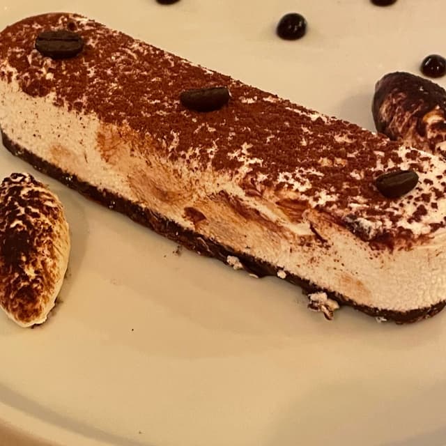 Tiramisù vegan, molto buona la crema ma un po' dura la base, nel complesso però buono e leggero.