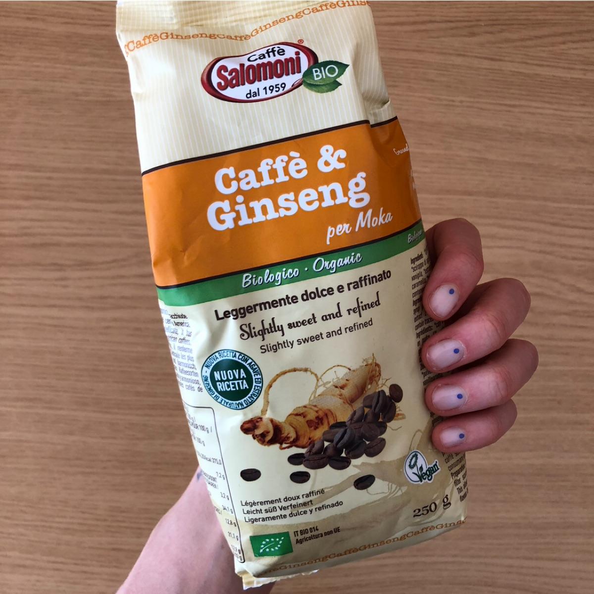 Stupenda miscela di caffè e ginseng aromatizzati al caramello e alla vaniglia, leggermente dolce (contiene 6% di sciroppo di agave), tutto bio. Ha un profumo delizioso e col latte è buonissimo. ✨