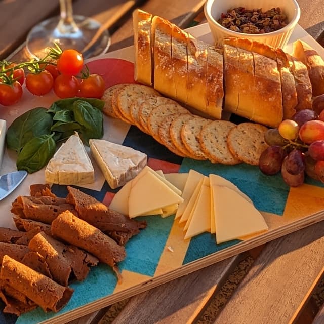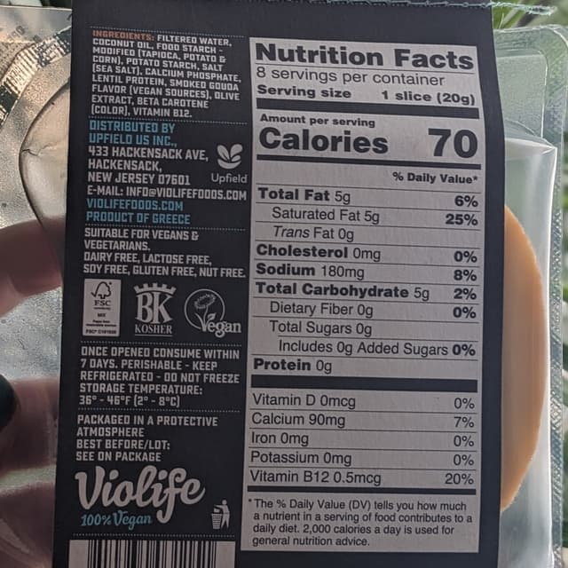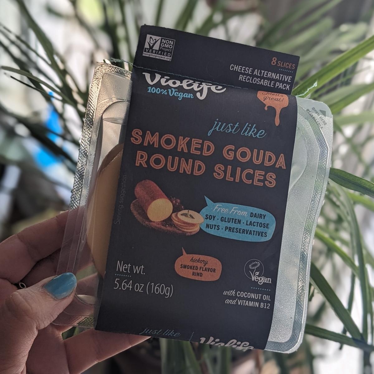 This is a wonderful, flavorful cheese! It has a strong smoked flavor that goes so well with the pungency of the Gouda flavor. The texture is great too. It has that powderiness that I associate with hard cheeses, which I enjoy. I also like the addition of a darker rind around the edges of the slices. This is great with some The Herbivorous Butcher meat such as pastrami on a cold sandwich. I also tried making a panini with the same ingredients. I don't think I give the cheese enough time to really melt, so I can't speak on its melting capabilities. Maybe I didn't take it low and slow enough. This was also a very nice addition to a charcuterie board! Cutting it up into triangles made it perfect for crackers!