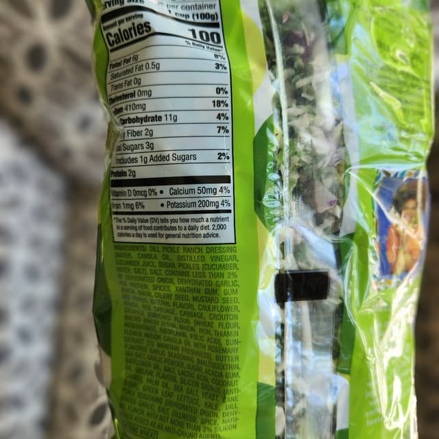 The veggies were crisp and fresh. The dressing was creamy and flavorful, but more was definitely needed for the full bag of salad. I'm not sure I understand the extra bag of dill seasoning included. It just tasted very salty to me, and the dressing was plenty flavorful without it. The croutons were the star, adding a nice variation of texture.