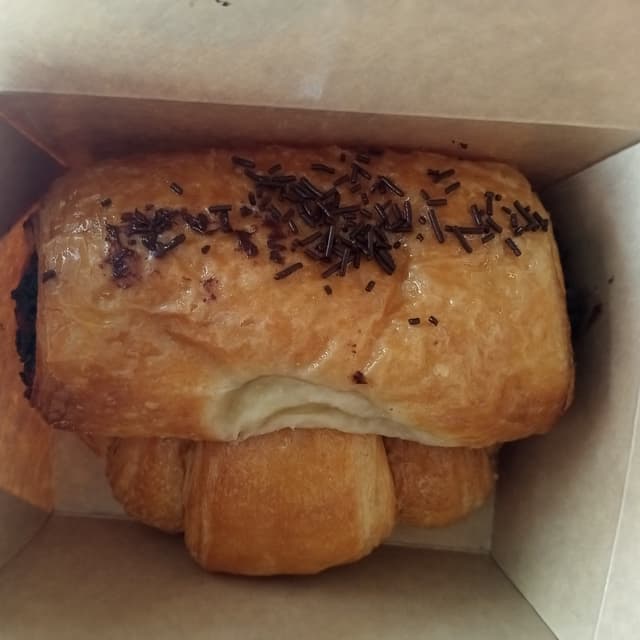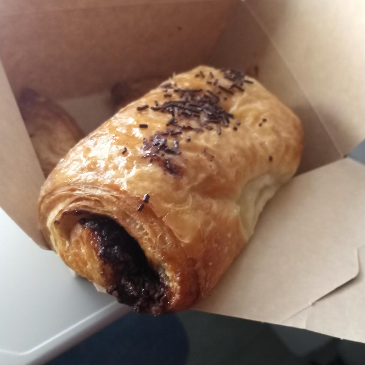 Napolitana de chocolate. La pedimos para llevar porque a la hora que fuimos a desayunar aún no había, cuando acabamos salieron del horno y no pudimos resistirnos a llevarnos una recién hecha para aguantar el largo paseo al hotel (es broma, estábamos al lado).