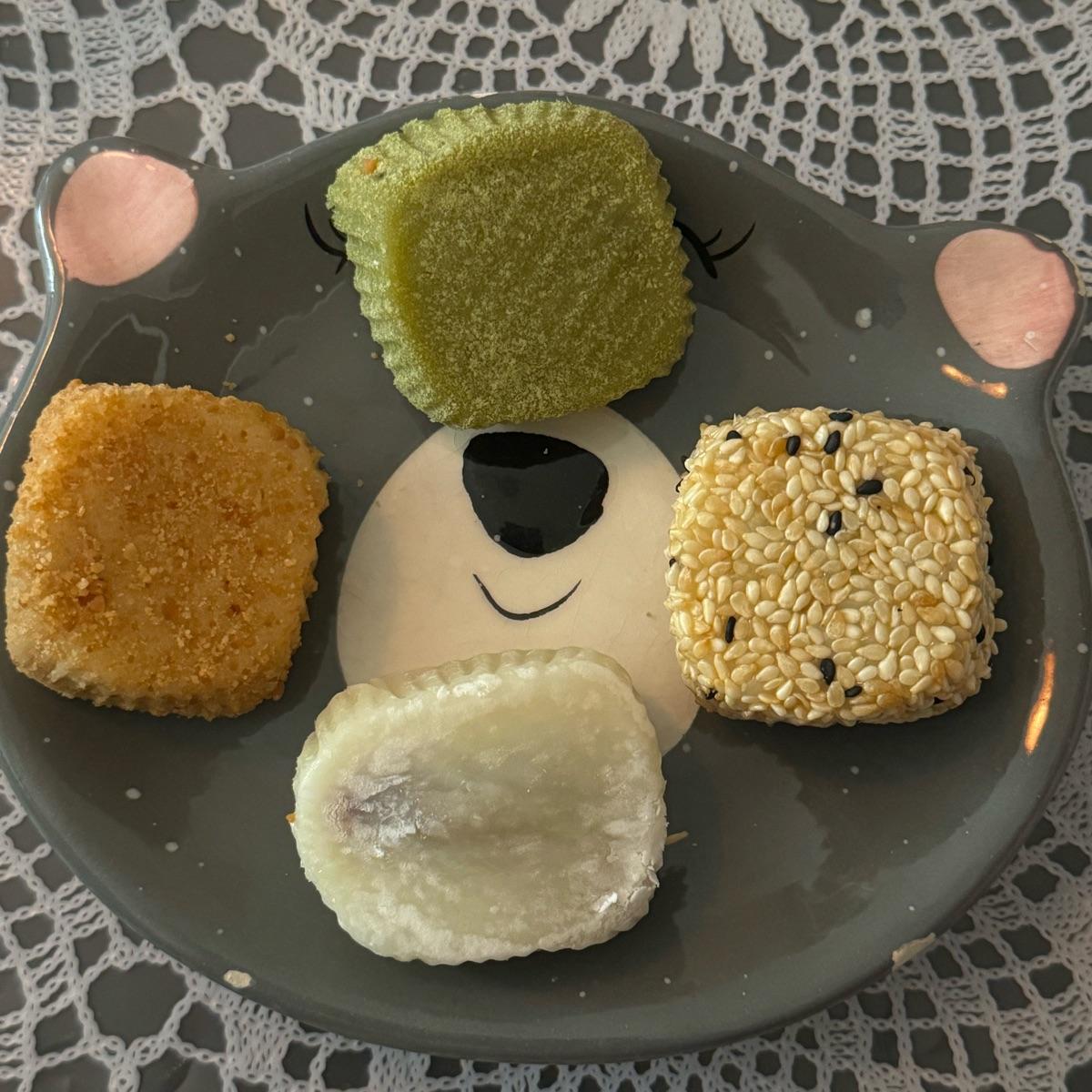 Io contentissima quando ci hanno detto che i mochi erano praticamente tutti vegani tranne due gusti. Questi sono al tè verde, fagioli rossi, sesamo e arachidi. Morbidissimi, sapore ottimo. 😵💫😵💫😵💫 Amati