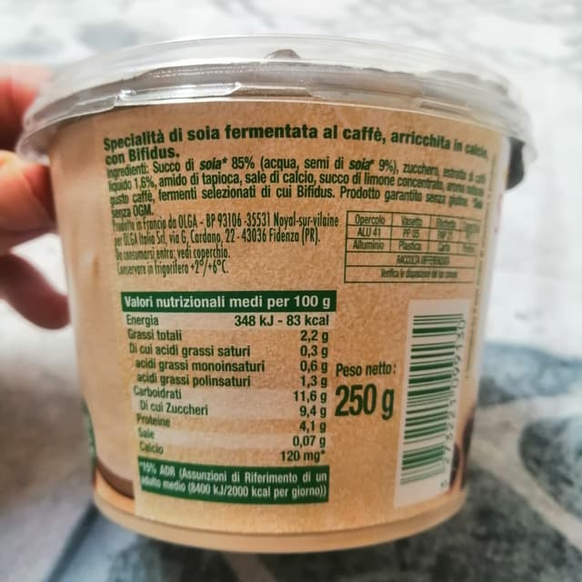 Un buon yogurt vegetale, molto cremoso, al sapore di caffè. Io ci aggiungo dei cereali e lo mangio di solito come merenda.