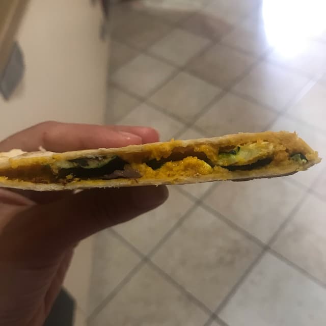 L’ho usato così com’è per condire una piadina (insieme a zucchine grigliate e ti olive) ed allungato con un po’ di acqua di cottura per condire la pasta konjack (insieme a carote, cipolle e pomodorini a pezzetti).