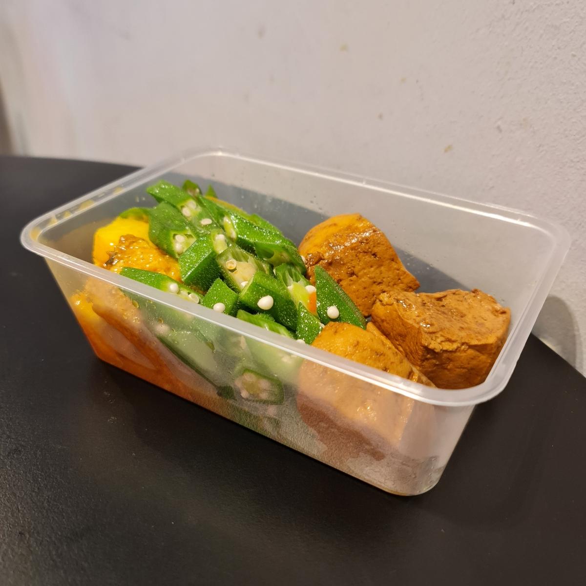 Just about under $5, $3.70 to be specific including the piece of plastic. Love what's in it 👉 braised #taukwa (x3), grainy tangy #seaweed #fish in assam gravy and green gorgeous slimy #okra, latter threads smeared all over the chin. Seriously, the amount of mucin it secretes is enough to put an escargaroire of snails out on a rainy day in December to shame