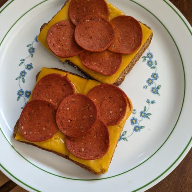 Finally made a trip to #traderjoes! These #pepperoni slices were pretty tasty. Had a light, soft texture but a bold spicy flavor. Didn't crisp up in the oven but had a good flavor when warm. A little pricey at $4.99 so not something I'd get all the time, but would be a great option when making pizza at home. One of the better #veganpepperoni I've tried.