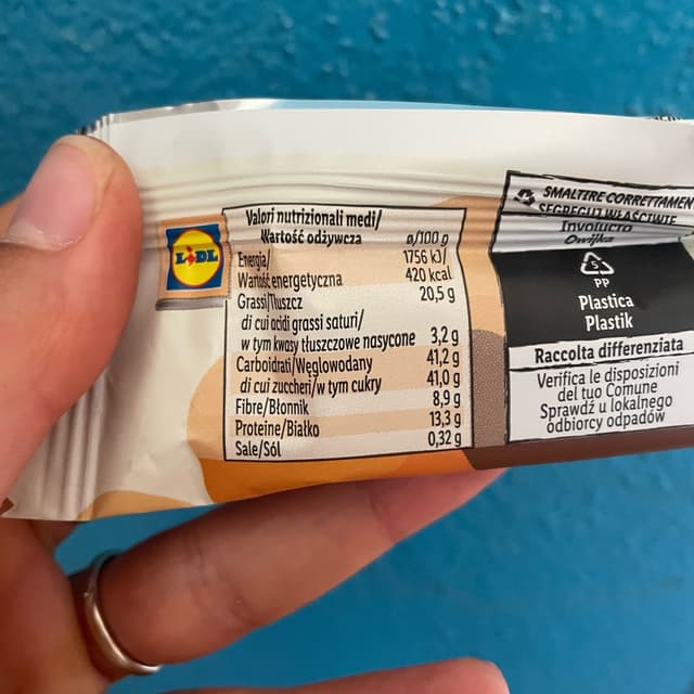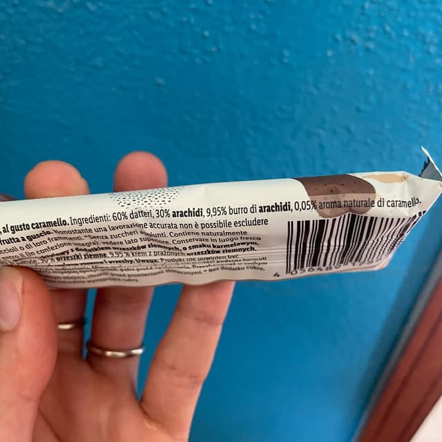 Questa #barretta mi è piaciuta molto. Il sapore più forte che si sente è quello delle #arachidi, mentre quello di #caramello è appena percettibile (infatti del caramello c’è solo l’aroma, il resto degli ingredienti sono arachidi/burro di arachidi e #datteri). Risulta molto dolce grazie ai datteri, cosa che a me piace, da amante del #dolce. Consistenza morbida tipica delle barrette energetiche, senza però risultare gommosa o difficile da masticare. C’è anche un tocco di #crunchy dato dalle arachidi. Lista degli ingredienti corta 👍🏼