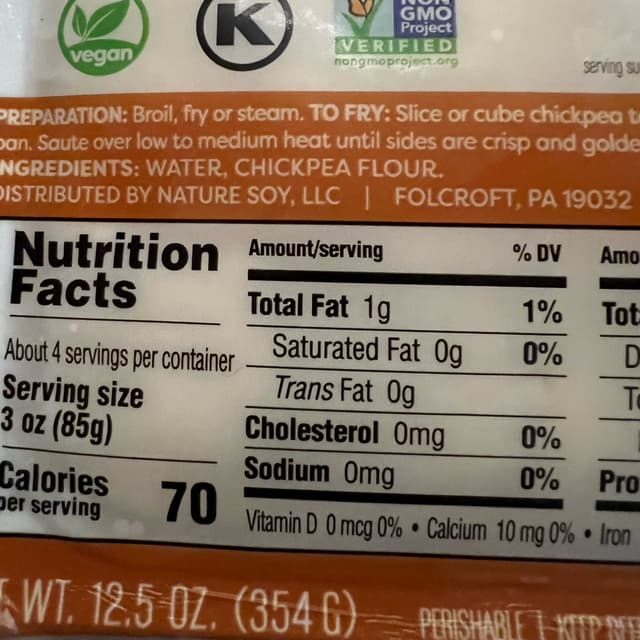 This was interesting definitely has a creamy texture but a good alternative to tofu . Definitely enjoy regular tofu better but I’m glad I tried it . I got this at ShopRite 70 calories per serving . I made a cabbage dish with this . .