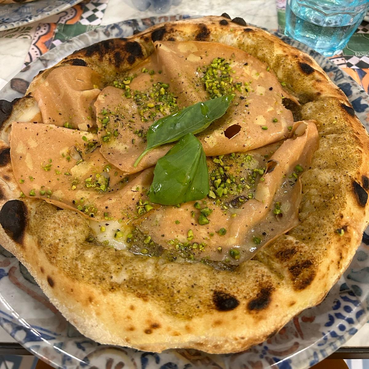 Impasto veramente spaziale, crema al pistacchio goduriosissima e mortadella veg veramente una scoperta, non me l’aspettavo! Unica pecca per me è un “tanta” nel senso che si fa fatica a finirla ma vale lo stesso discorso per la versione onnivora, comunque ottima!