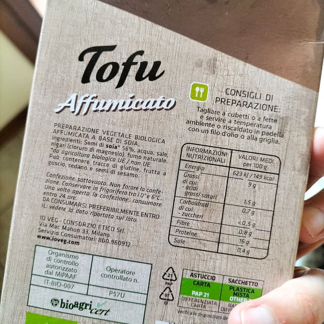 Introducing io veg tofu affumicato, a versatile plant-based protein that is perfect for Italian dishes. Made with smoked tofu, this ingredient is easy to flavor and cook, making it ideal for creating creamy carbonara or rich amatriciana sauces. With its mild smoky taste and smooth texture, io veg tofu affumicato is sure to impress even the most discerning palates. Try it today and elevate your plant-based cooking game. Some reviews mention its light and delicate flavor, as well as its ability to absorb other flavors well.