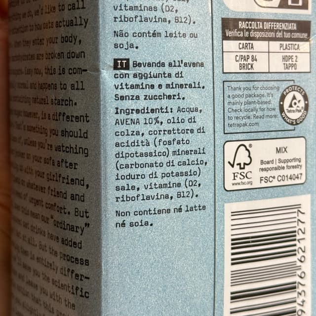 Non male questo latte di avena, sapore buono, non ha zuccheri aggiunti però non è granchè dal punto di vista nutrizionale... ce ne sono di migliori. Carino il packaging!
