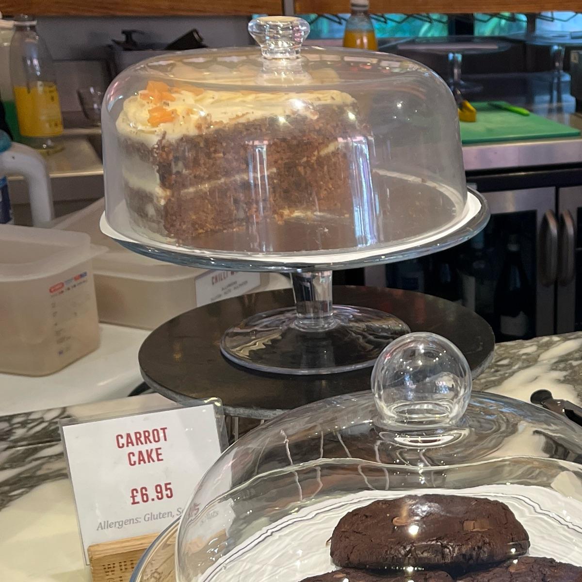 🥕🍰 This is a deliciously moist #carrotcake with perhaps a #creamcheese #frosting. The server at the other branch of this #allveganrestaurant rated this as their best cake. I far prefer the red velvet. Maybe the carrot cake is #toohealthy for me? It had chunks of nuts 🌰🥜boosting your protein intake. The upstairs dining room is beautiful here but I had to take this away as I was stuffed. It’s a gorgeous area around here. I was just gobsmacked by the architecture and stunning tall trees. 🌳🌳🌳 This is a #veganrestaurant where I’d like to try everything on the menu of course. #saveveganrestaurants #veganlondon #londoneats