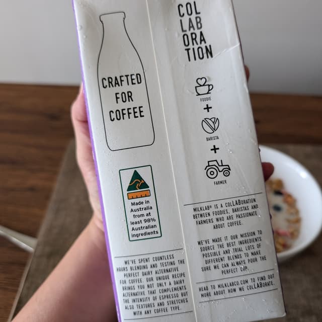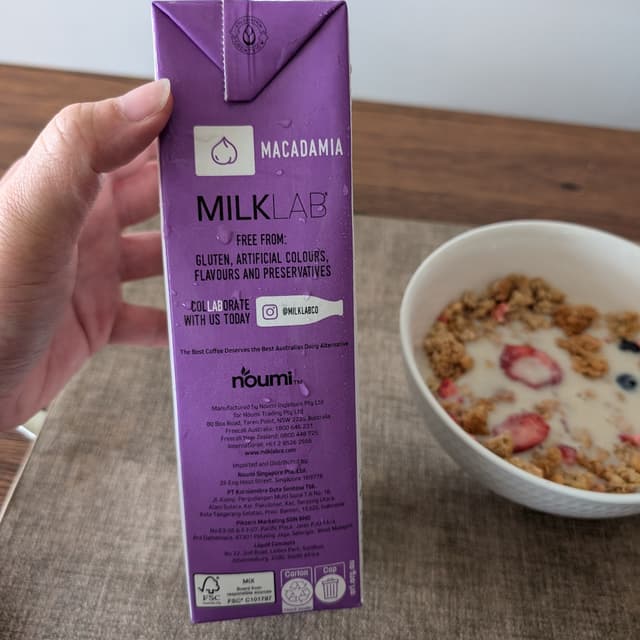 Lol I clearly didn't read the fine print, it says #mylk for coffee 😅 I don't drink nearly enough non-black coffee to get through a carton like this before it goes bad, so I pressed it into service with my morning granola 🙂 Not sure how milk for coffee differs from milk for undefined everything, but this one had a thick texture, a heavily nutty taste profile from the #macadamia, and less sweetness than I wanted 😐 #ditchdairy 💪