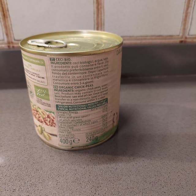 Buonissimi!!! Solo ceci biologici, acqua e sale per un prodotto gustosissimo e nutriente. Ho aggiunto solo dei pomodorini e mais biologico per un'insalata leggera ma al tempo stesso saziante, appetitosa e saporita. Li consiglio vivamente!!!