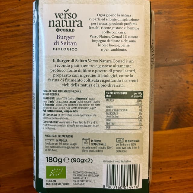 La confezione contiene due burger di seitan all’apparenza molto poco invitanti. Sono buoni ma nulla di che, hanno una consistenza un po’ pastosa. Gli ho presi perchè in sconto e visto il prezzo e il sapore un po’ sciapo non penso gli ricomprerei.