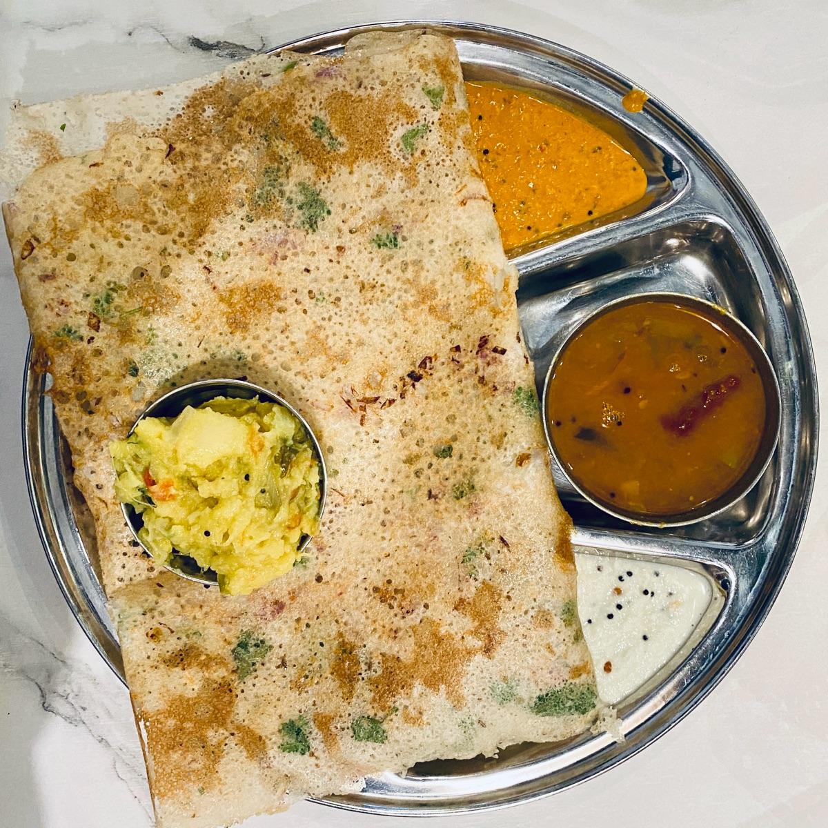 I think I’ve traveled the world and had dosas in at least 40 countries. It’s one of my favorite things and what’s not to love?! A thin crispy crepe made from fermented semolina flour, with lightly caramelized onions in the batter and served with my favorite coconut 🥥 chutneys and sambar, a deliciously thin spicy lentil soup.