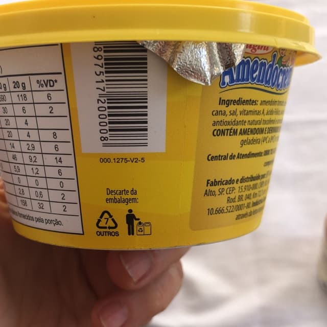 Amendocrem é um creme de amendoim para utilizar em receitas veganas doces ou para passar no pão. Tem açúcar adicionando.