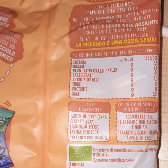 Sacchetto da 20gr: ricordarlo quando si vede la tabella che riporta i valori per 100gr di prodotti.