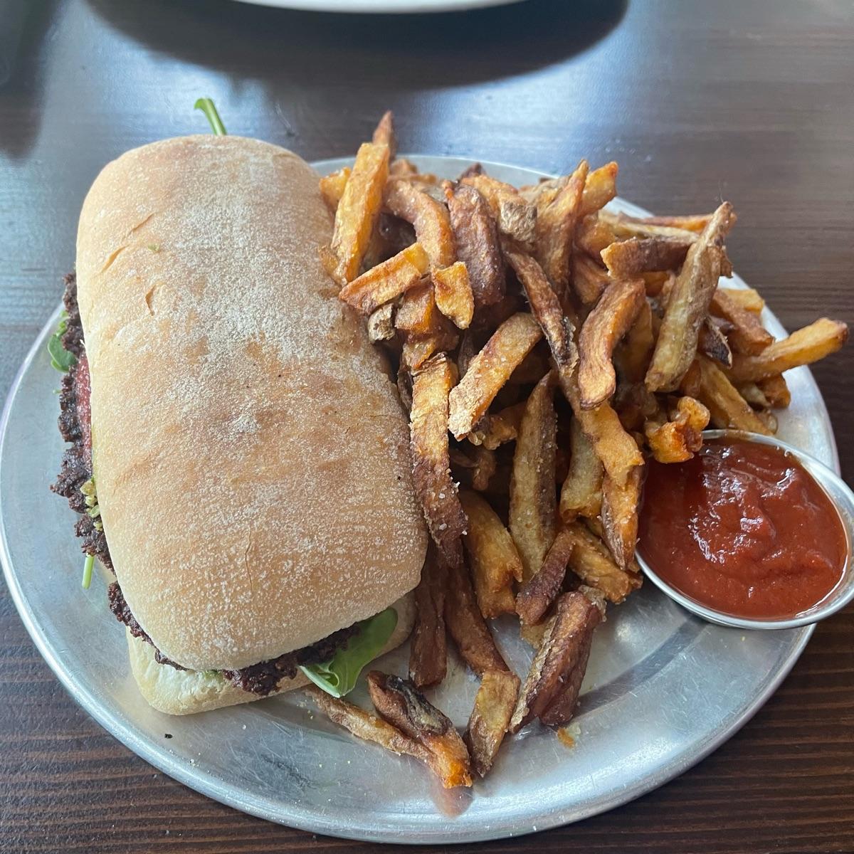 Absolutely delicious. The chickpea cutlet has a great texture and flavor. The mozzarella and pesto are delicious. The toasted ciabatta is great as well as the fries.