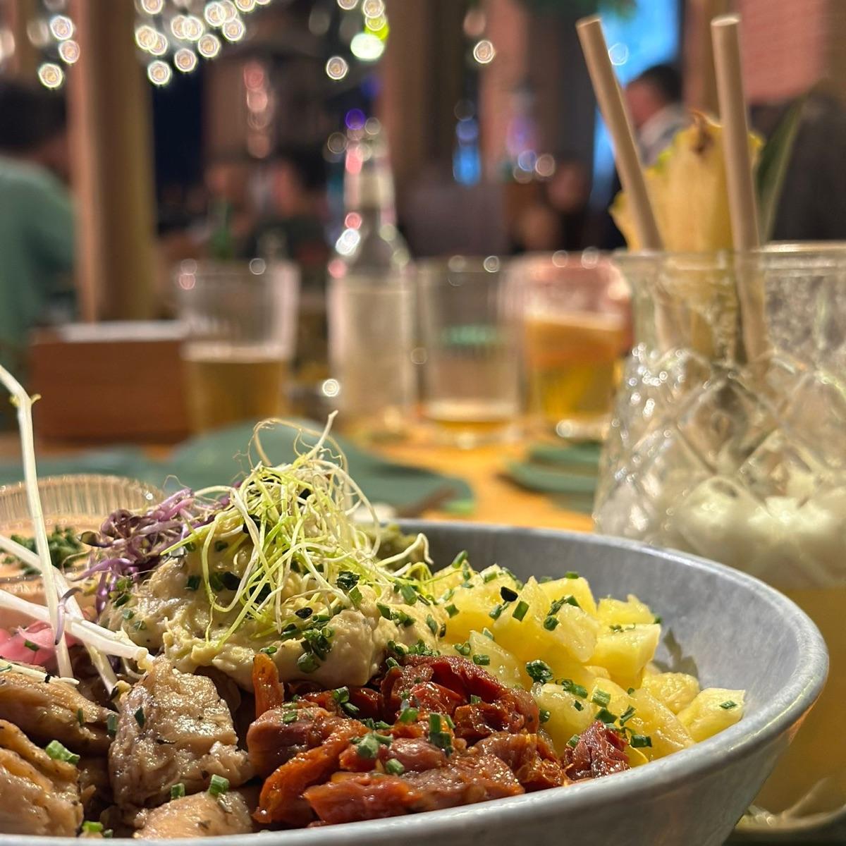 Plato típico de la cocina indonesia 🇮🇩 y malaya con base de arroz (nasi) o fideos (mee); (arroz en este caso aunque olvidó pedirlo con fideos 🤦♀️) y verduras salteadas al wok, con NO 🐓 y NO 🥚 ligeramente picante. Sobró para el día siguiente 14,9€