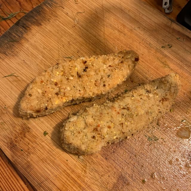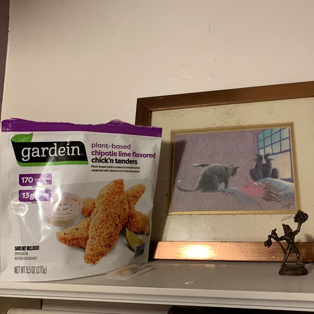 these had a touch of flavor in the coating not found in your standard #fakechicken. there are breaded so a little different texture also but great to make a #vegansandwich more filling or in a stir fry - but i cooked them a little first before stirring to crisp the breading.