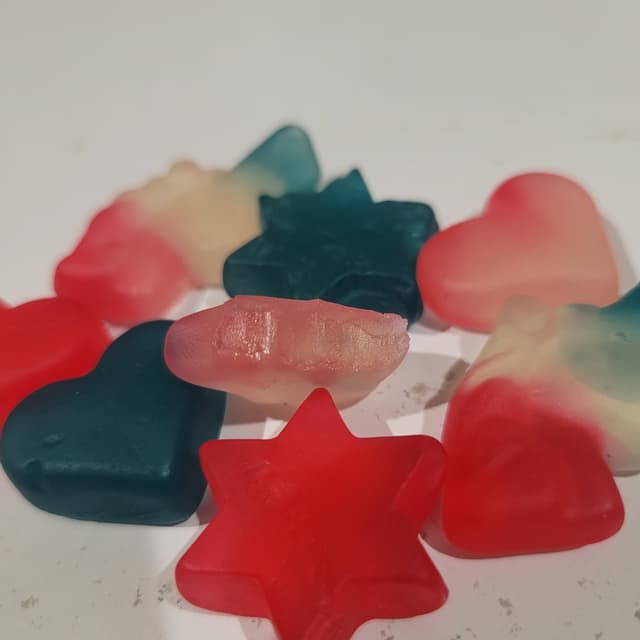 So yummy! As someone who likes a sort of tough, chewy gummy (I was a Haribo fan pre-veg) this is perfect. This fun red, white, & blue mix is strawberry, orange, and cherry flavored. This is according to the website, as the packaging doesn't say. I think the orange especially stands out as delightfully tangy and sweet. Also, I love the cute shapes and natural colors. I def recommend these gummies for those who want a chewier bite! ❤️🤍💙🦄