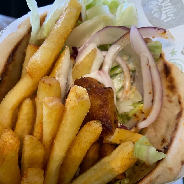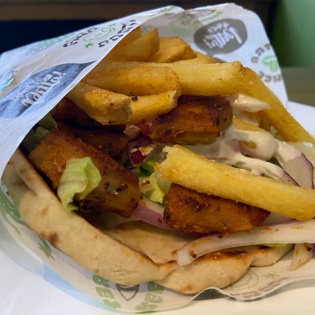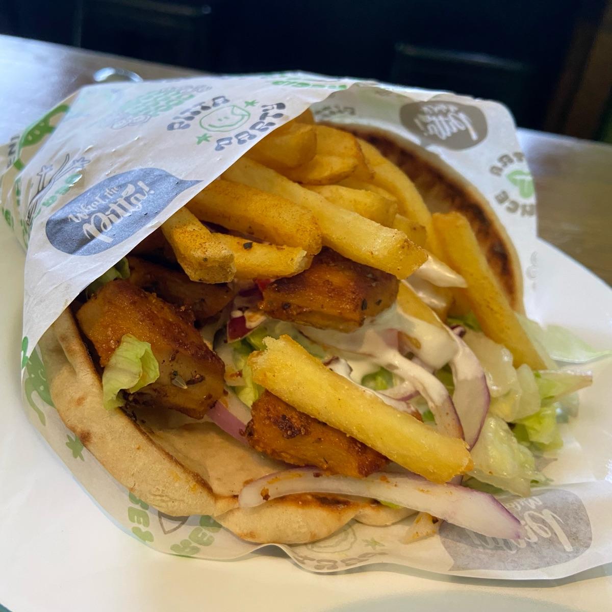 Camden branch of a fully ve kebab shop across the UK. Around the corner from many popular music venues, in a spot that’s a bit quieter than the high street, making it a great place for a pre-concert meal. The portions are huge and pretty reasonably priced. Allergens and ingredients are clearly labelled. You can customise your order, add or remove items, and specify allergies all in the machine. Digital & printed menu in english. Outdoor / indoor seating available’ Bike parking available outside shop. #kebabshop #vegankebabshop #camden
