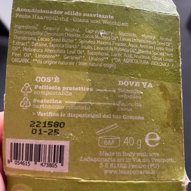 Balsamo solido regalatomi sempre da mia cugina. A differenza dello shampoo, è più facile da usare! Profumo molto buono.