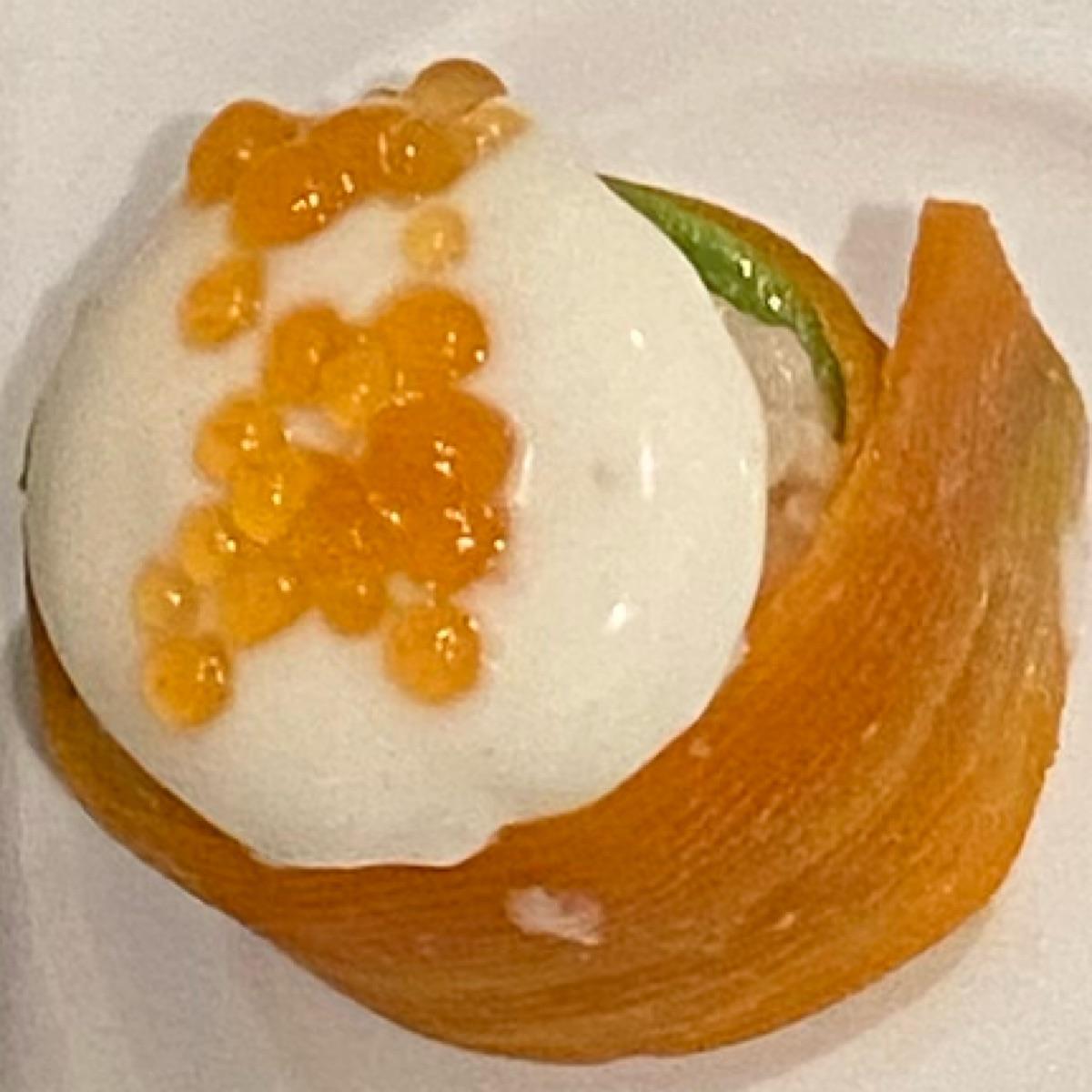 This ‘salmon’ was marinated carrot topped with mayo and ‘caviar’. Preferred the other sushi I tried, probably because I’m not a fan of mayonnaise.