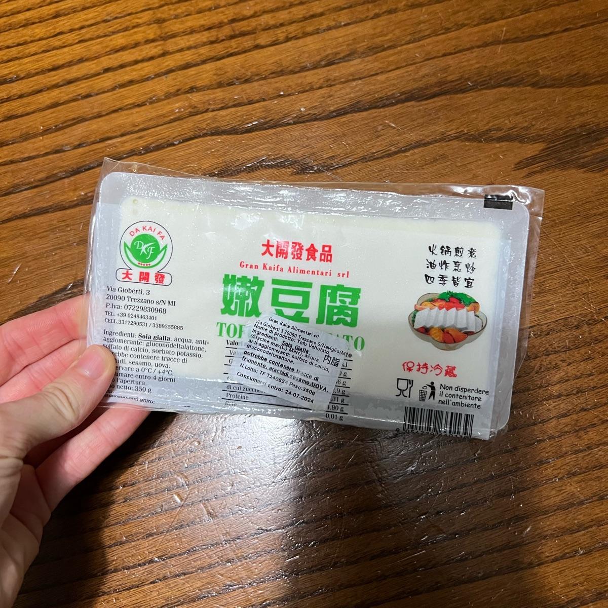 Tofu vellutato, molto buono, lo uso nella zuppa di miso ma anche per preparazioni dolci. Pagato 0,80€ in un market asiatico.