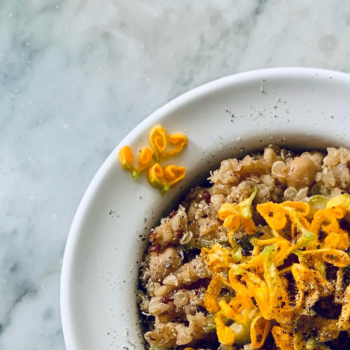 Ottime cipolle di Tropea, purtroppo non biologiche. Qui le ho usate insieme a zucchine e relativi fiori per preparare dei cereali risottati.