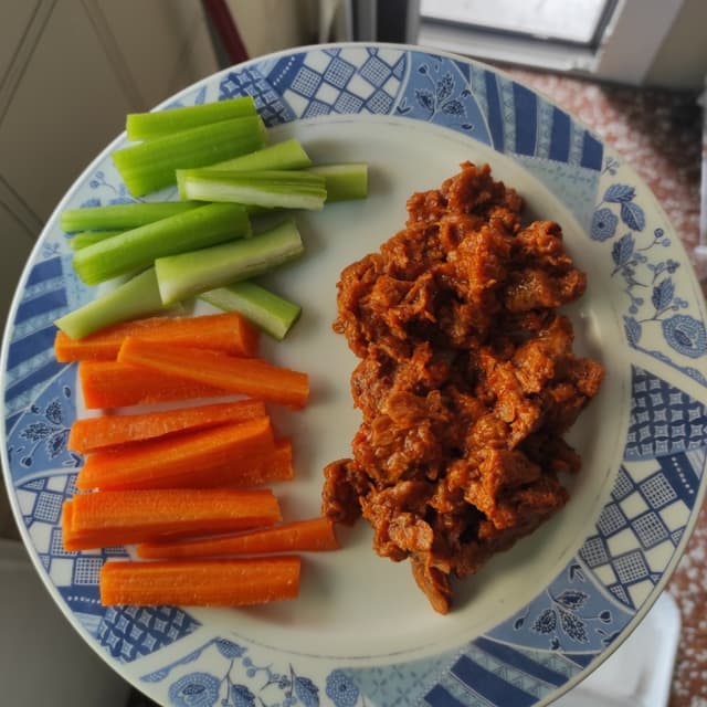 Straccetti di soia già pronti, vanno solamente scaldati. Buoni buoni per davvero