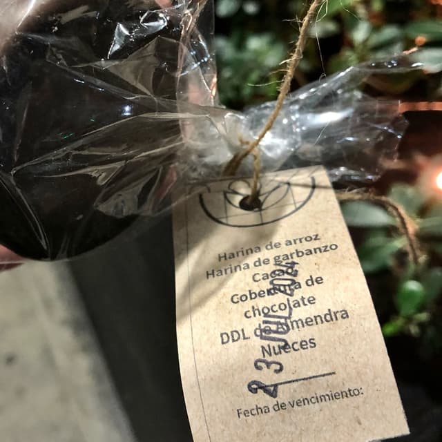 Es gluten free, a base de harina de arroz, harina de garbanzo, cacao y relleno de dulce de almendras.
