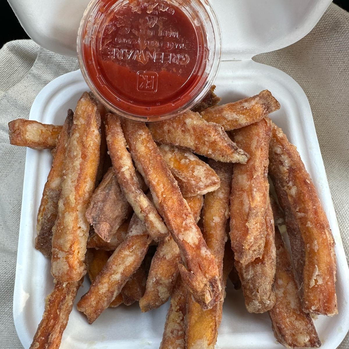These are really delicious, downright addictive! Slightly sweet and salty, served with a smoky flavored ketchup. Perfectly deep fried. I ran into the G-Monkey Food truck today at the Coventry Farmers Market in Coventry CT. but I’ll be sure to check their website for their whereabouts going forward, as there were a lot of other delicious looking items on their menu.