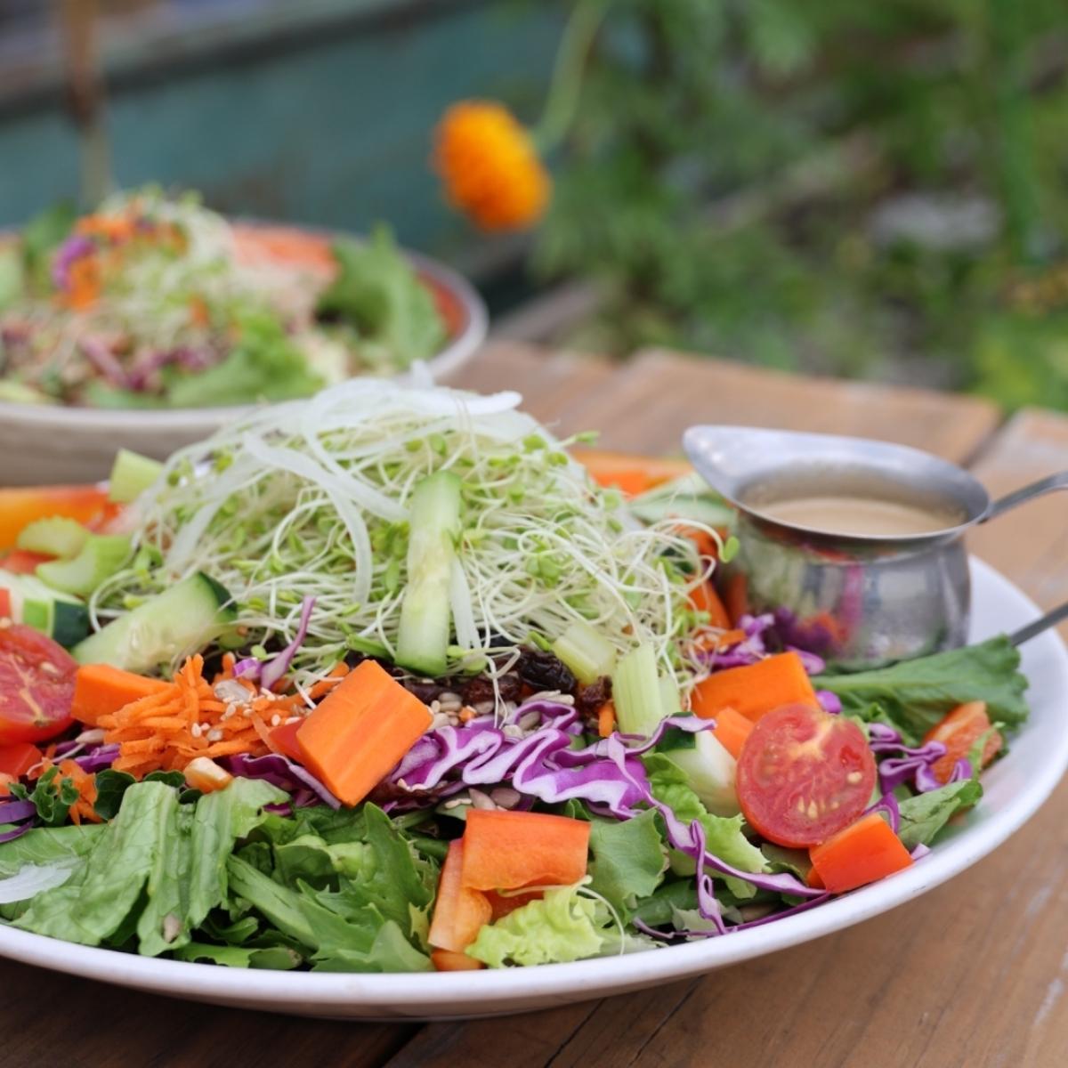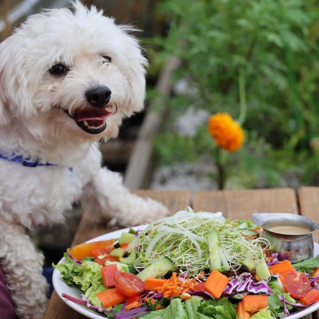 This was a FANTASTIC salad! I never order salads at Portia's because I love her wraps and breakfast sandwiches so much, but it was super hot out, and something cold and crunchy sounded good. (No Ollie didn't eat the salad or onions). We sat outside by the little greenhouse so Ollie could join. ✨️