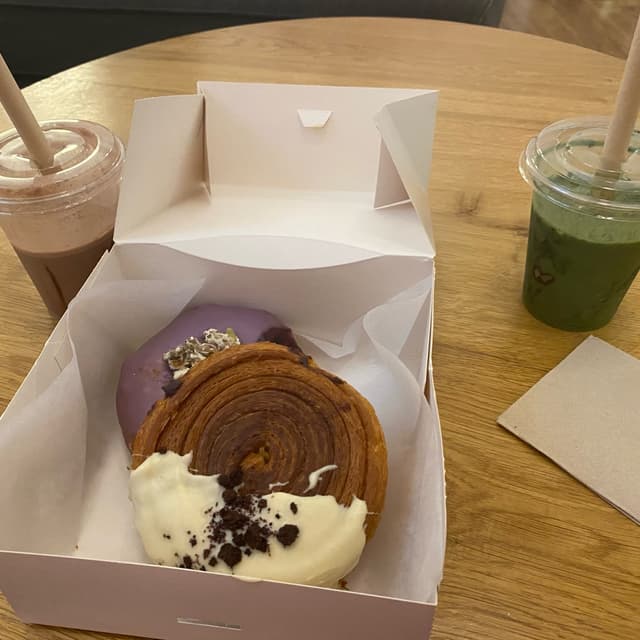 Estaban super ricos , muy recomendable. Pedimos dos tipos de donuts (arándanos y nutella) y estañaba super buenos. También pedimos batidos y estaban bien pero tampoco son nada destacable.