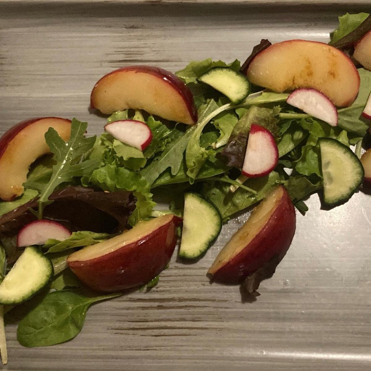della pesca grigliata accompagnata da insalata, diciamo che era sicuramente buona e fresca quindi ottima per l’estate ma sicuramente non un piatto da pagare più di 10€, però devo comunque dare una recensione positiva al ristorante con un intero menu vegan e dove le cose erano tutte poi molto buone